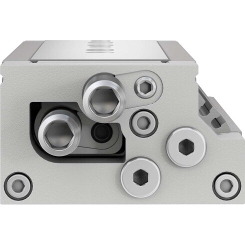 Задняя крышка, корпус и траверса выполнены из анодированного алюминия. Направляющий рельс — из закаленной стали. Шток производится из нержавеющей высоколегированной стали.